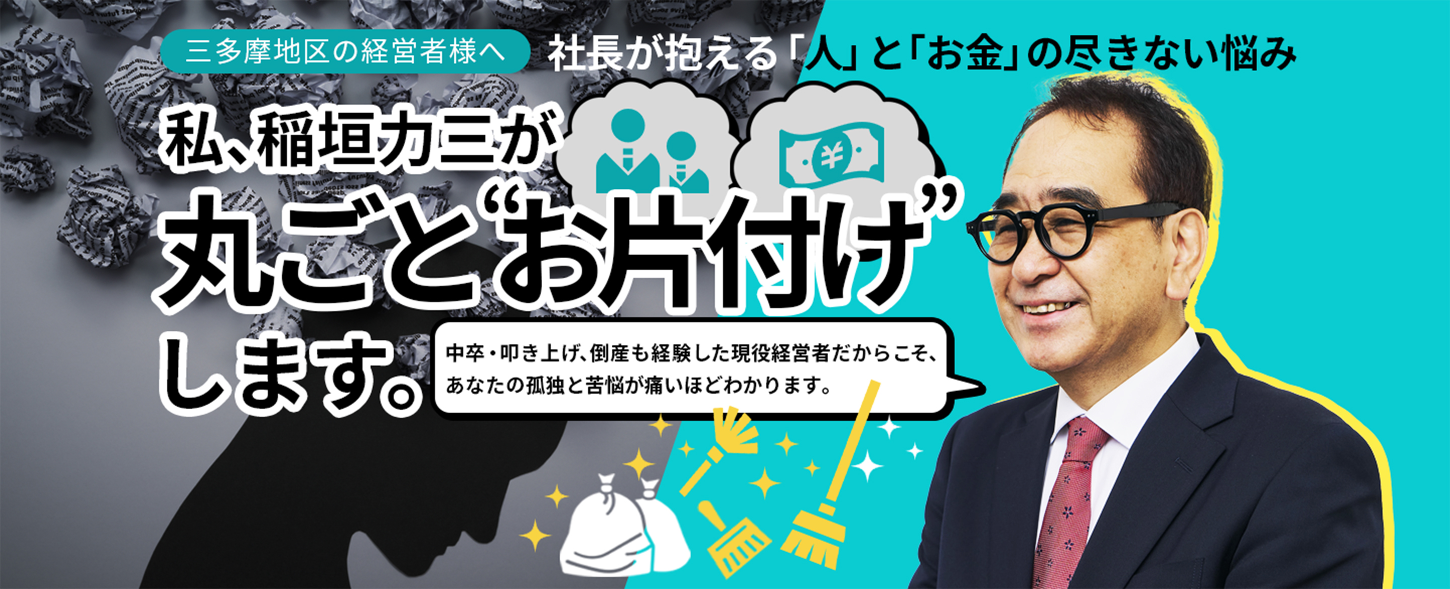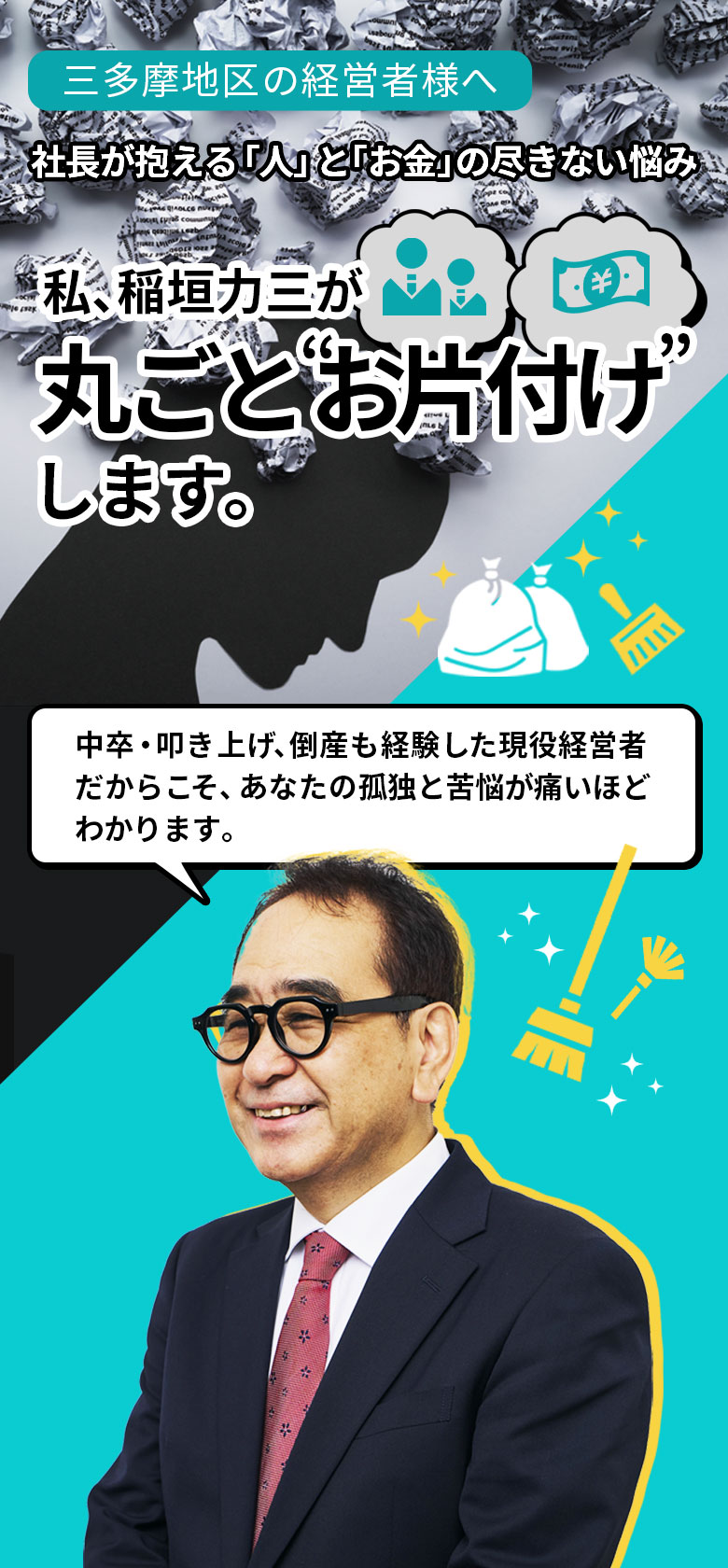 同じ痛みを知る私、稲垣力三が、貴社の課題も心の重荷も、すべて丸ごと引き受けます。