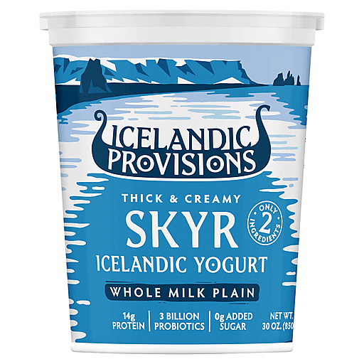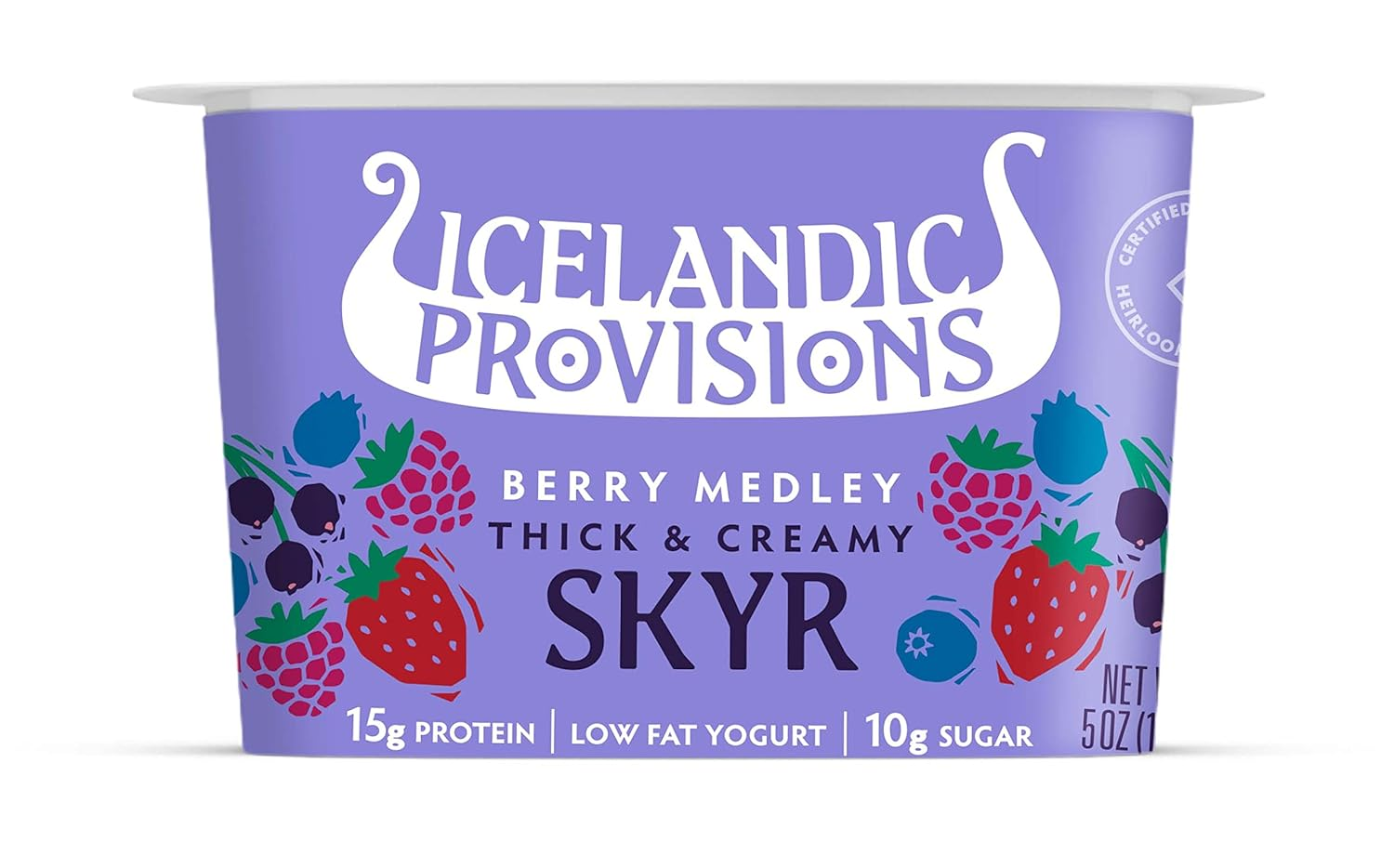 It follows the trend of embracing simple ingredients, as skyr is simply cultured pasteurized skim milk with live active cultures.